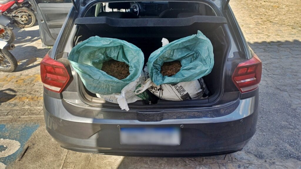 O condutor, que não portava documentos pessoais no momento, foi desembarcado e o veículo revistado. Na parte traseira do automóvel, os policiais encontraram dois sacos contendo uma grande quantidade de substância vegetal seca, com odor e características semelhantes à maconha. No interior do veículo, em uma mochila, também foi encontrada uma pedra de haxixe e uma pequena quantidade de fumo. Após a pesagem, verificou-se que o material encontrado nos sacos totalizou aproximadamente 19,1 kg de substância análoga à maconha.